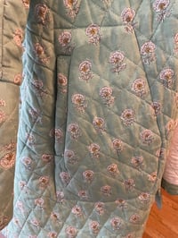 Mint and cream soft quilted cotton swing coat. One size, arms can be shortened or lengthened to fit. Inset side pockets. Made from a thrifted new quilt