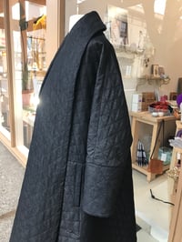 Warm! Cozy! Matte Black quilted cape swing coat. Same pattern as the denim swing coats, but with a much thicker warmer quilted fabric. 65% cotton, 35% poly filling. One size. Made to Order. Please allow 10 days for production.