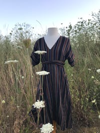 The easiest dress to fit into and wear all summer long. It ties at the natural waist and has a simple a-line silhouette. Made out of 100% cotton gauze that has natural wrinkled texture. The dress is lightweight, but not shear. It measures 36-38 inches long depending on the size. Sizing is very forgiving on this style, the waist is oversized and the ties adjust the fit.